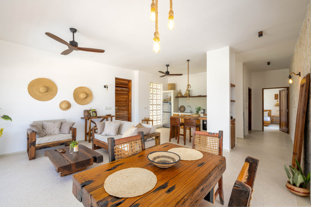 Outside, open-air spaces offer room to slow down and reconnect with nature. Terraces, pools and shaded outdoor areas invite long mornings, quiet afternoons and evenings spent under open skies, surrounded by the rhythm of the island.